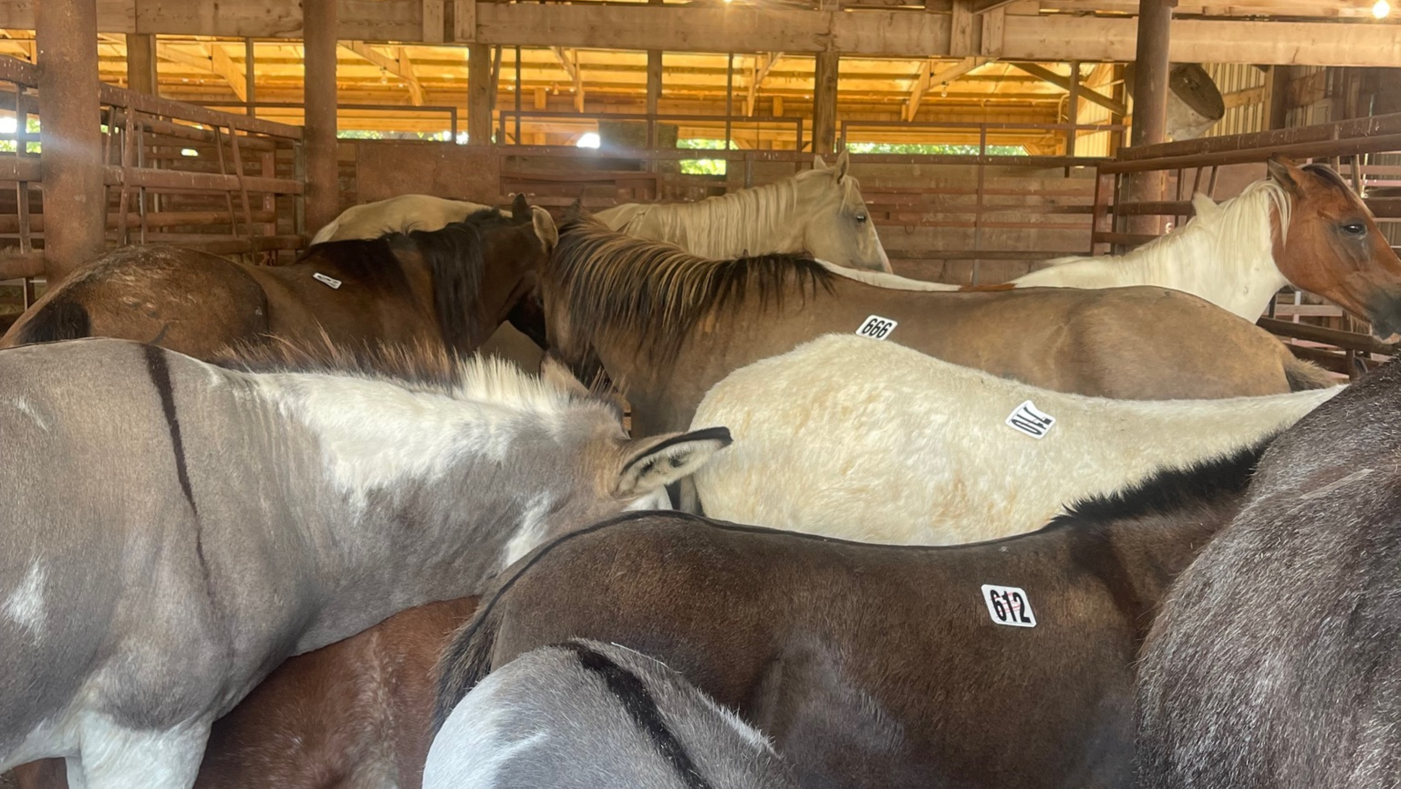 Large animal auctions are where horses, ponies, donkeys, and other livestock are sold. Animals often arrive by the trailer-load, run through the auction with little to no information, and are sold within moments.